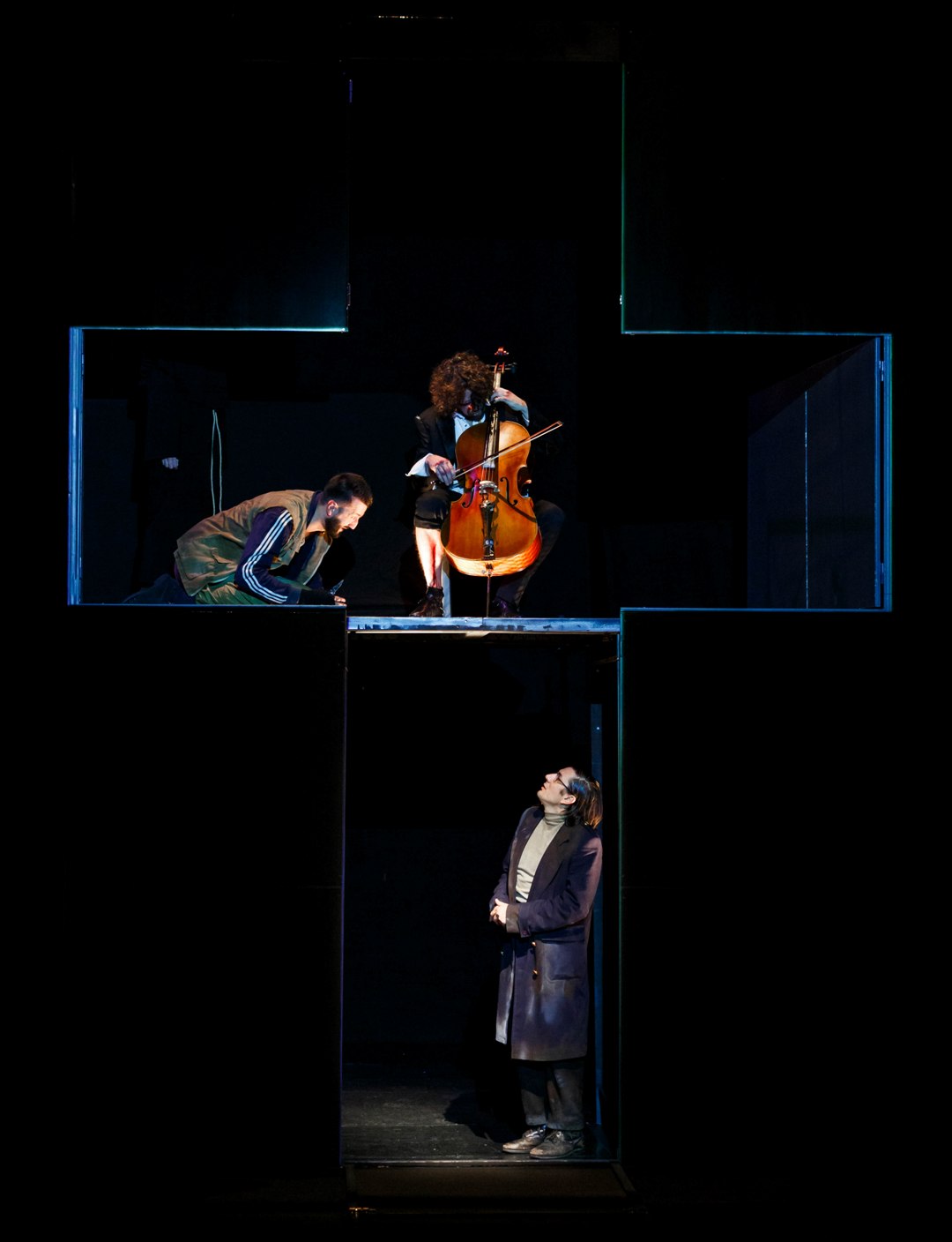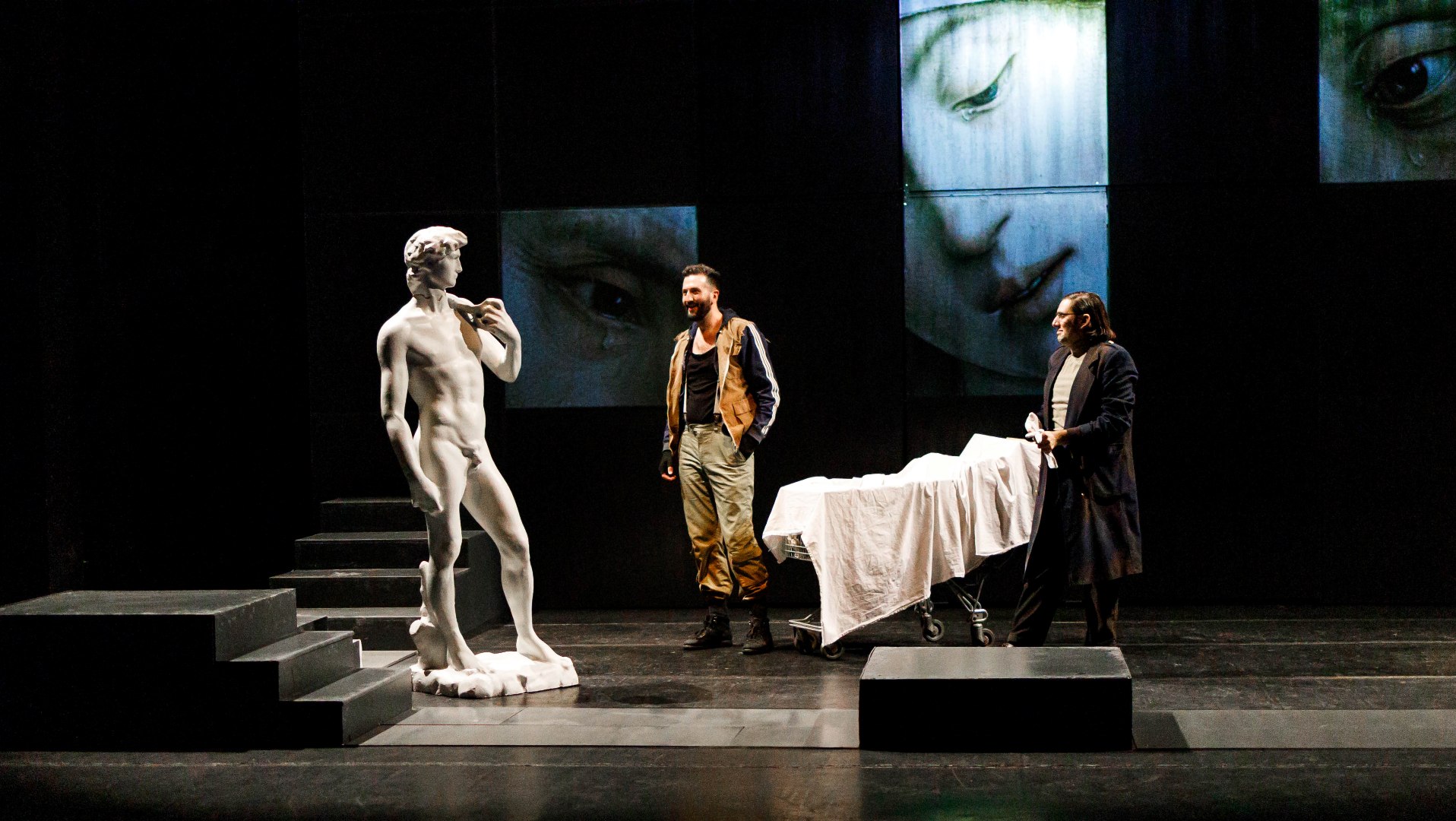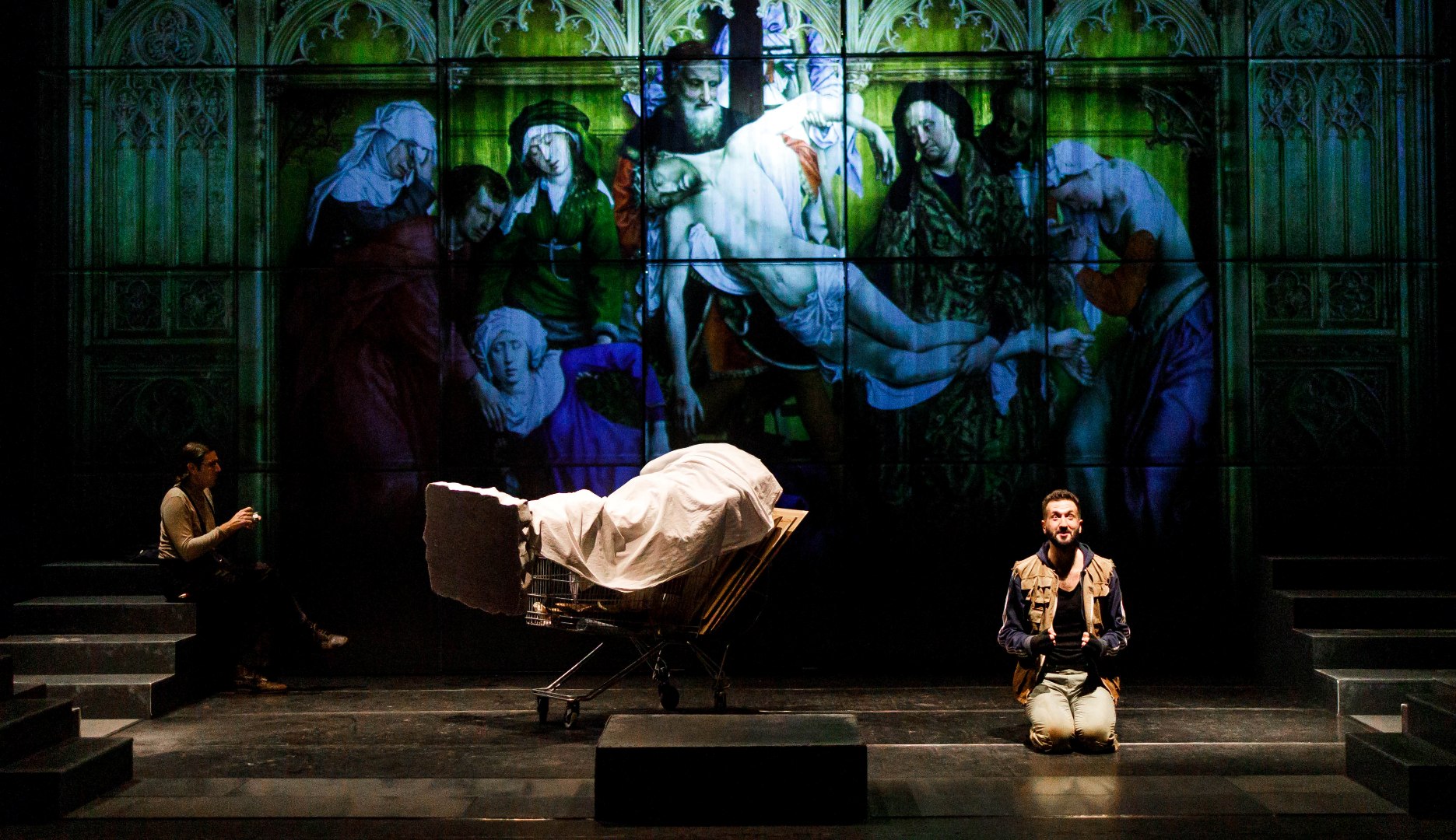 Једна од ријетких “лијепих” ствари у цикличности историје јесте што многе догађаје упознаш прије него их доживиш — кроз приче, књиге, или кроз осјећај да су далеко, иза тебе. Али историја, кад воли да се понавља, сачекаће и тебе. Данас живимо у времену несигурности: можда већ траје трећи свјетски рат, можда тек почиње. У таквом тренутку постављамо комад писан током ратова на овим просторима. Али овај комад није само о рату. Код Бекета, јунаци чекају Годоа. Код нас је Годо већ дошао — други Христов долазак се догодио, али умјесто спасења доноси апокалипсу. Не бибилијску, него људску, бруталну, искривљену. Двије хиљаде година касније, човјек који је проповиједао обичне истине и промијенио ток историје можда се поновно враћа. Да ли бисмо га препознали? Да ли бисмо могли поднијети огледало које би нам ставио пред очи? У овој представи, пратимо ликове Ала и Анђела, који кроз рушевине свијета траже своју “обећану земљу”. Током свог путовања, они чувају фрагменте умјетничке и културне баштине, трагове креативности и савршенства човјека, показујући да права вриједност није само преживјети, него сачувати оно што нас чини људима. Човјек је, кроз историју, све више постао окренут себи. Почиње да обликује себе, свој лик, своје тијело, своју свијест — да прави умјетничко дјело од самог себе. Умјетност је доказ да човјек није само дивљак, него биће способно за умно и узвишено, остављајући траг који надилази пуку егзистенцију. За крај бих искористио реплику из наше представе: “Да сам ја Бог, болело би ме уво ако они тамо праве мој лик. Шта ме брига? Ја сам Бог. Не може ме повредити грађење мог лика Али, зато би’ ставио уместо тога, великим словима: НЕ ГРАДИ ЛИКА РЕЗАНА ПО СВОМЕ ЛИКУ, ЧОВЕЧЕ.“